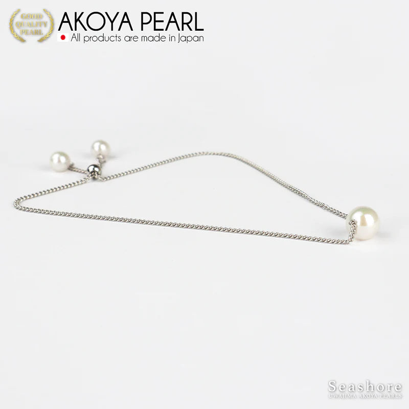 真珠を3粒使用したスライド式アジャスター付のパールブレスレット。スライド式アジャスター付