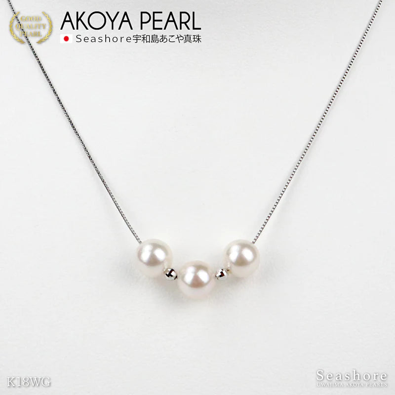 ①あこや真珠 3粒スルー ネックレス【7.0-7.5mm】